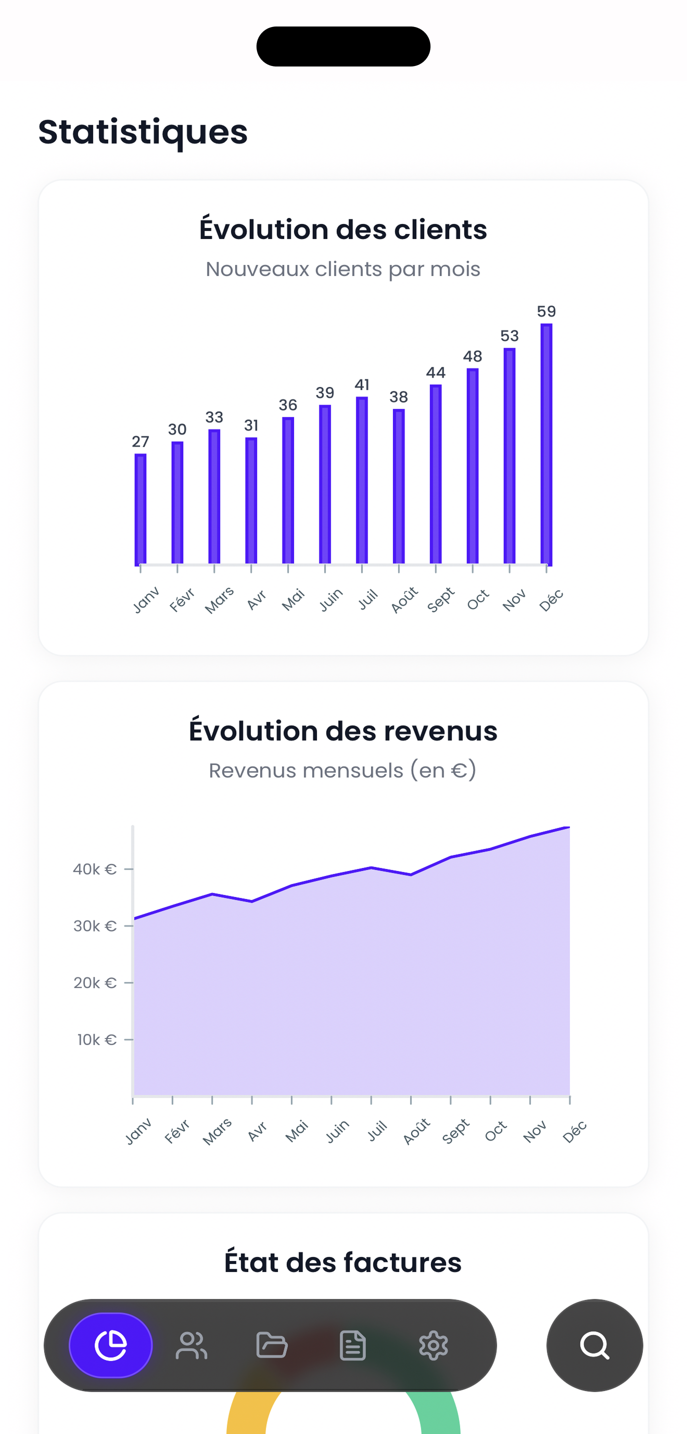 Takae a été conçu pour les freelances, indépendants et dirigeants de petites entreprises. Il suffit de créer un compte pour commencer à gérer vos clients, vos factures et vos projets.